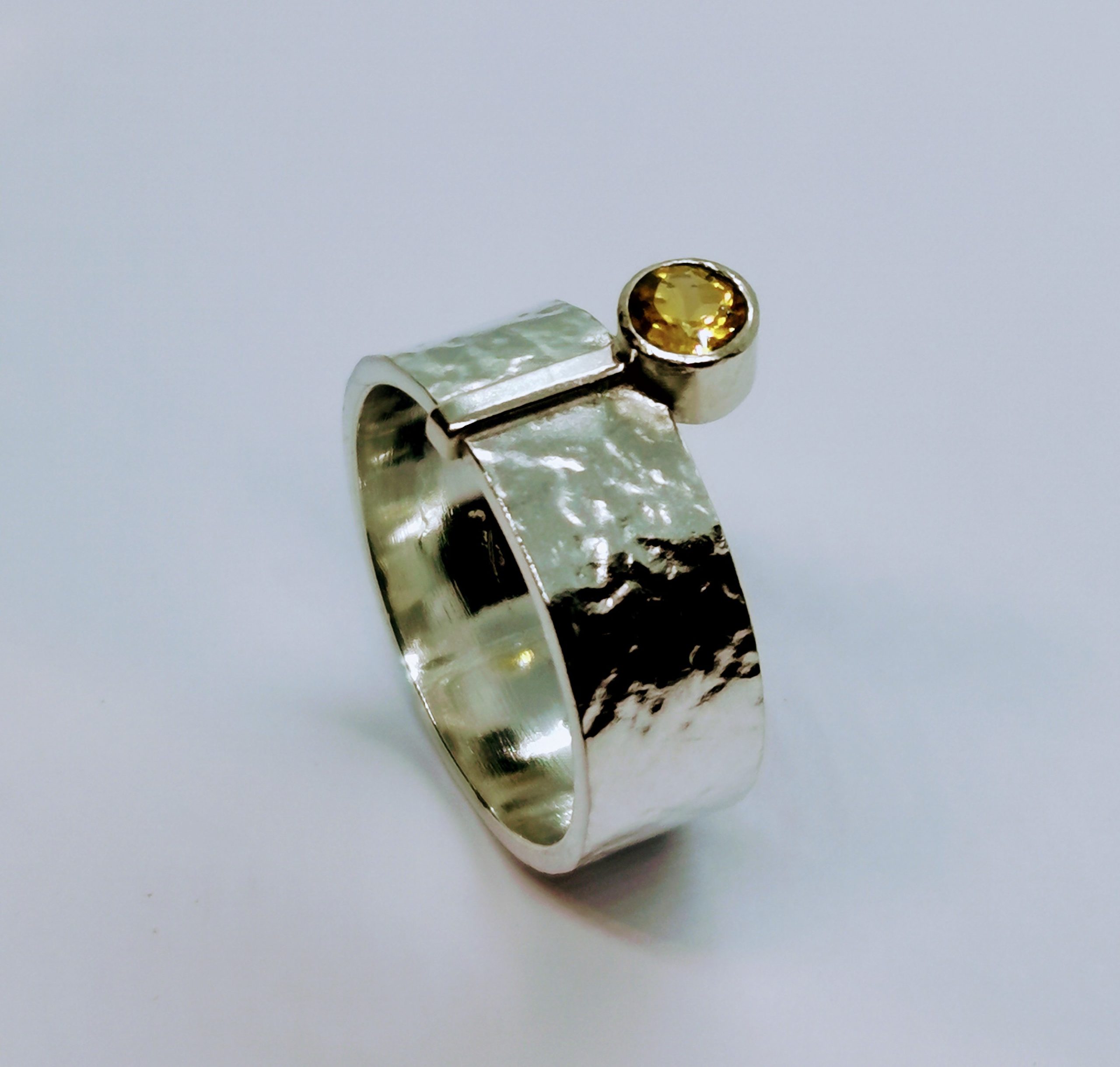 Pierre centrale : Citrine lumineuse, éclat doré et chaleureux taillé à façette, 4 mm de diamètre