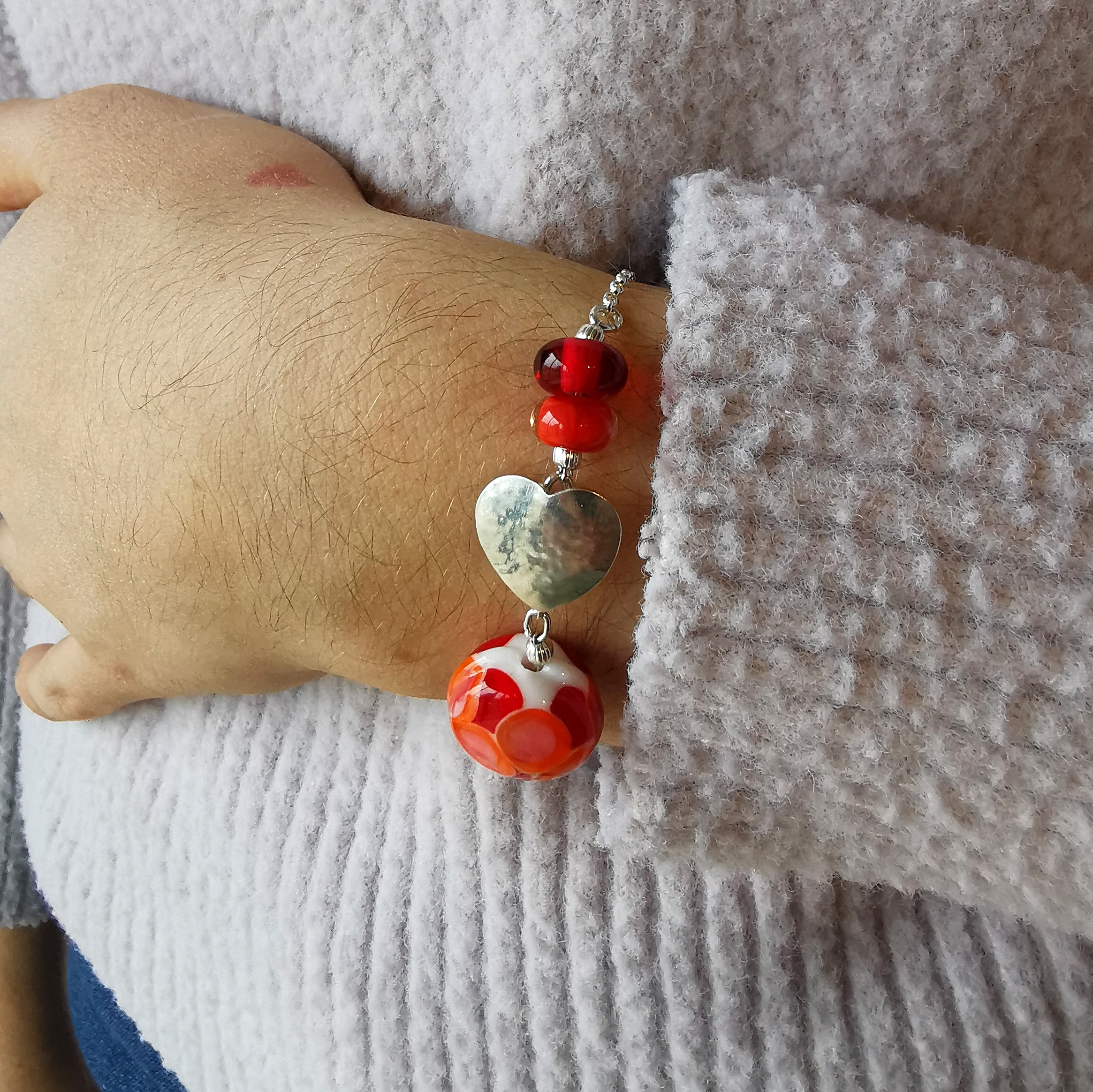 Ici les perles ont des couleurs de différents rouges.