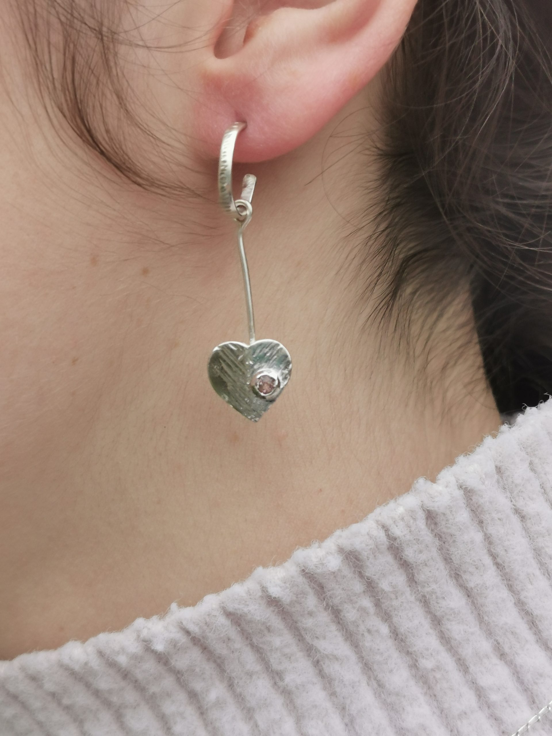 Les boucles d’oreilles sont modulables pour être portées de différentes façon selon votre tenue. Soit les créoles seules, soit le pendant coeur et topaze rose.