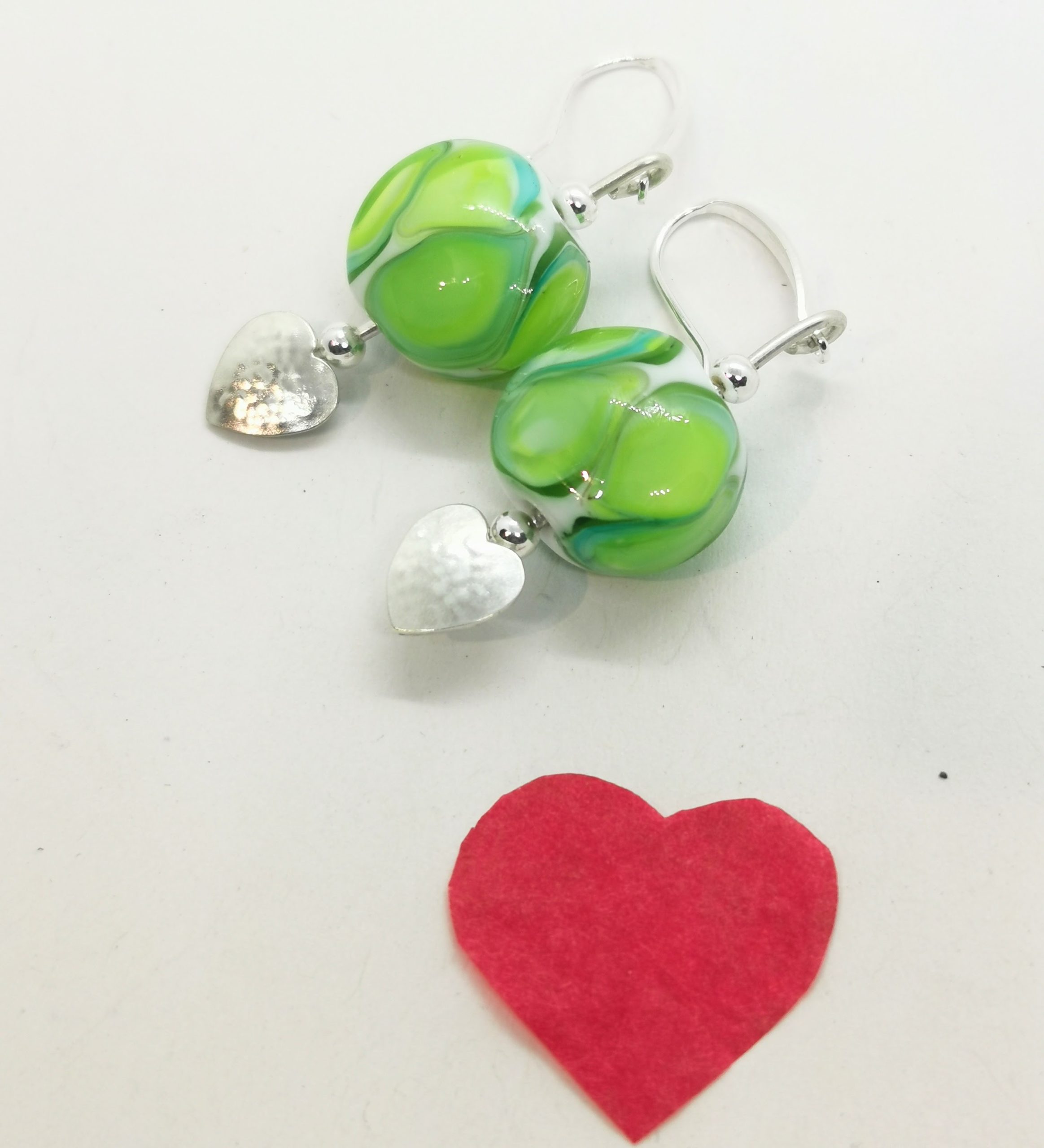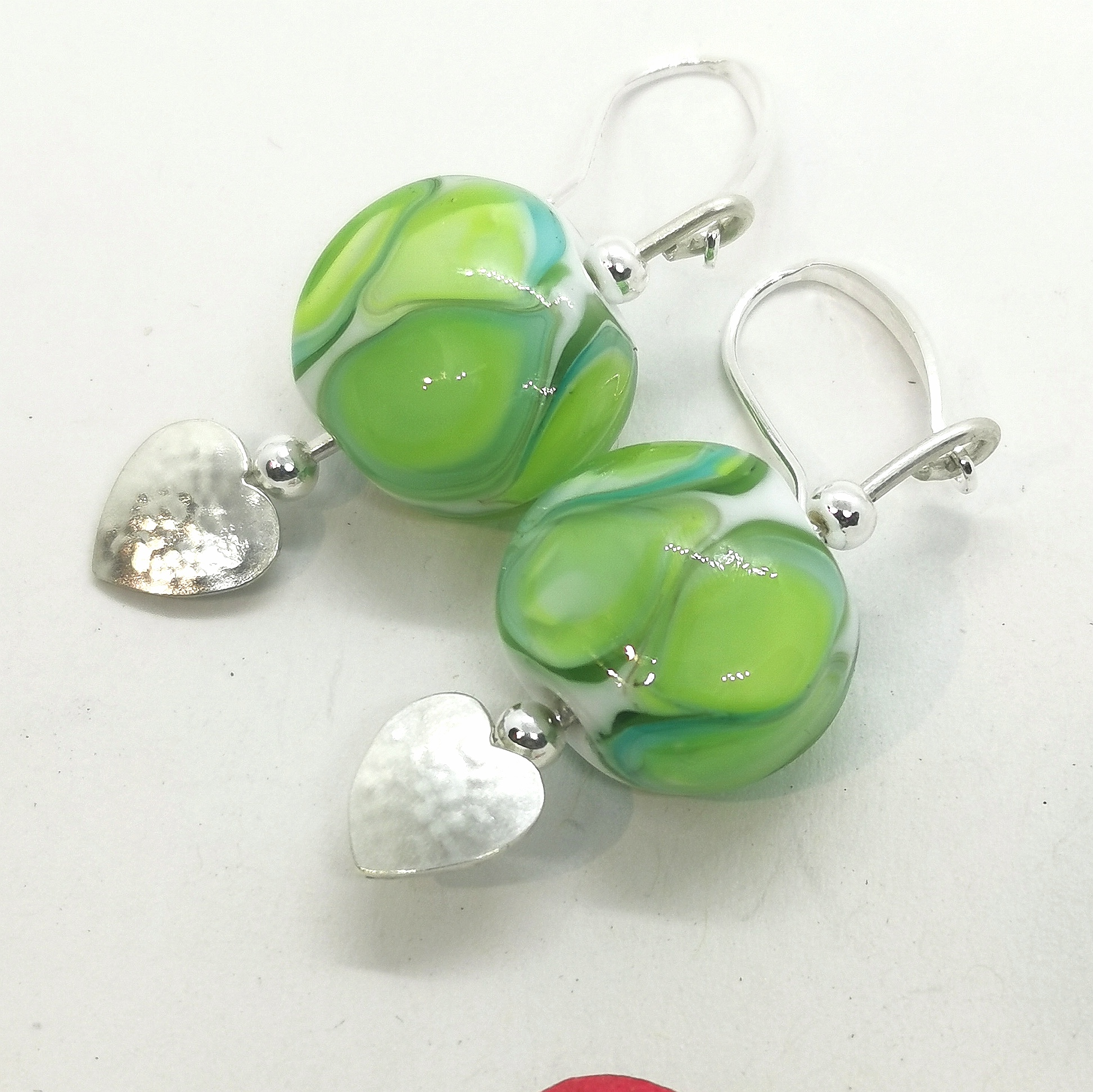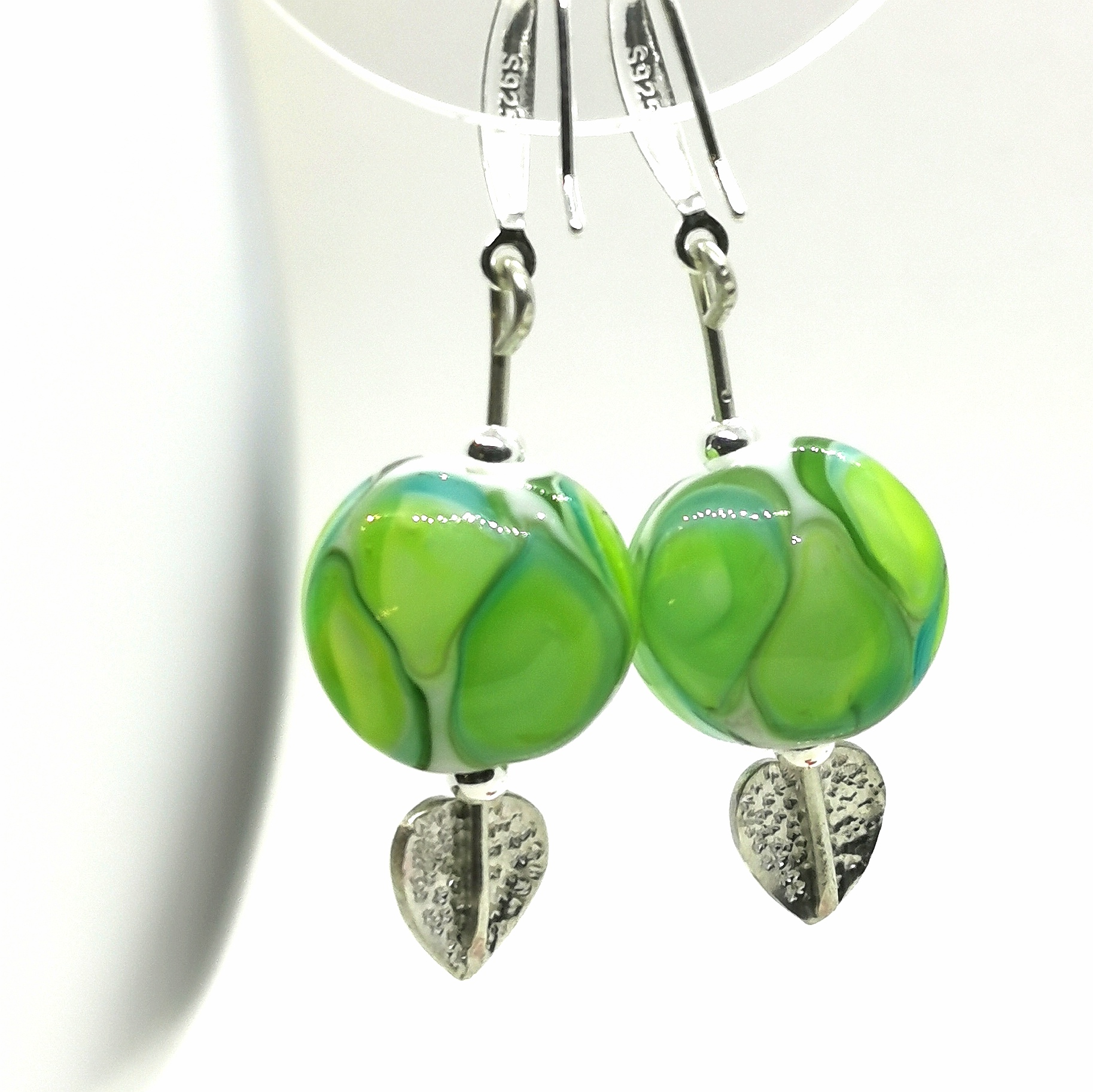 Boucles d’oreilles pendantes en argent et perle de verre de Murano, entièrement fait à la main dans mon atelier. Chaque pièce est unique.