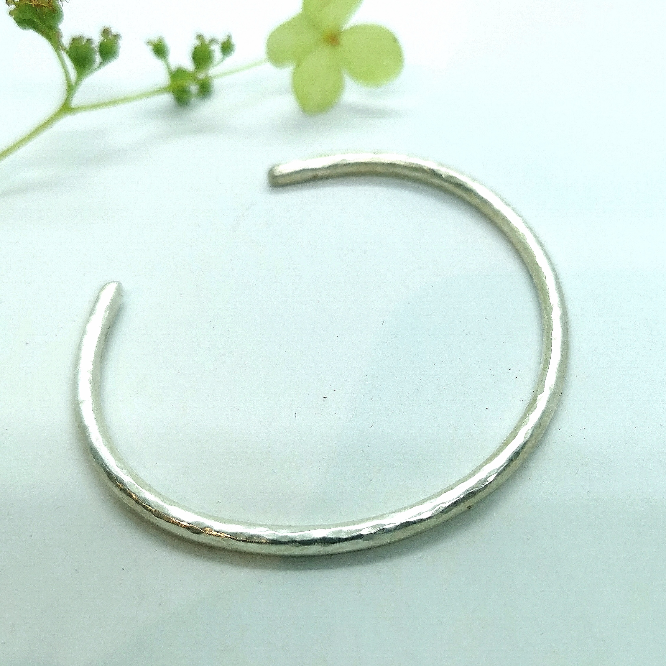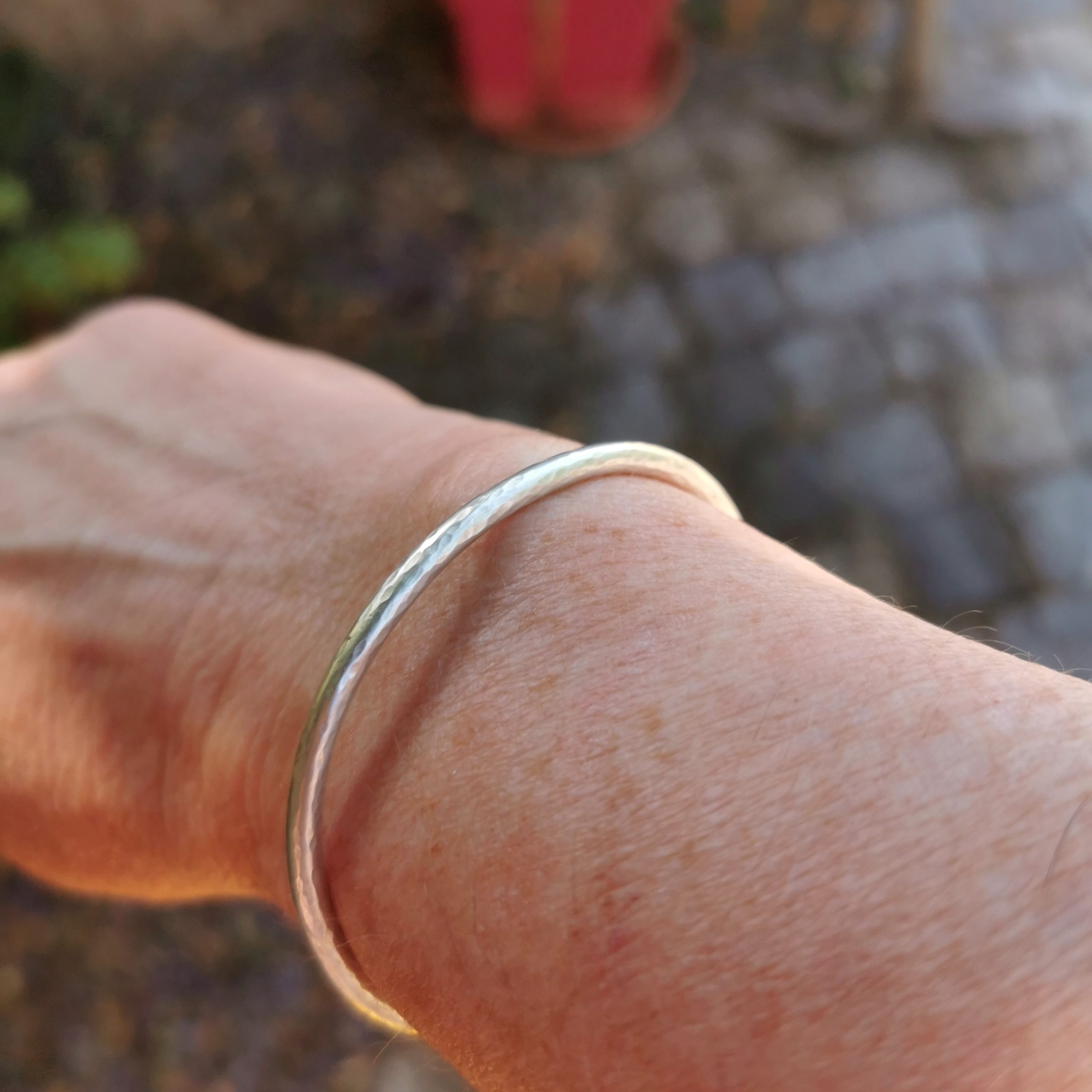 Bracelet rond martelé : une forme douce, au relief texturé, pour un bijou à la fois simple et distinctif.