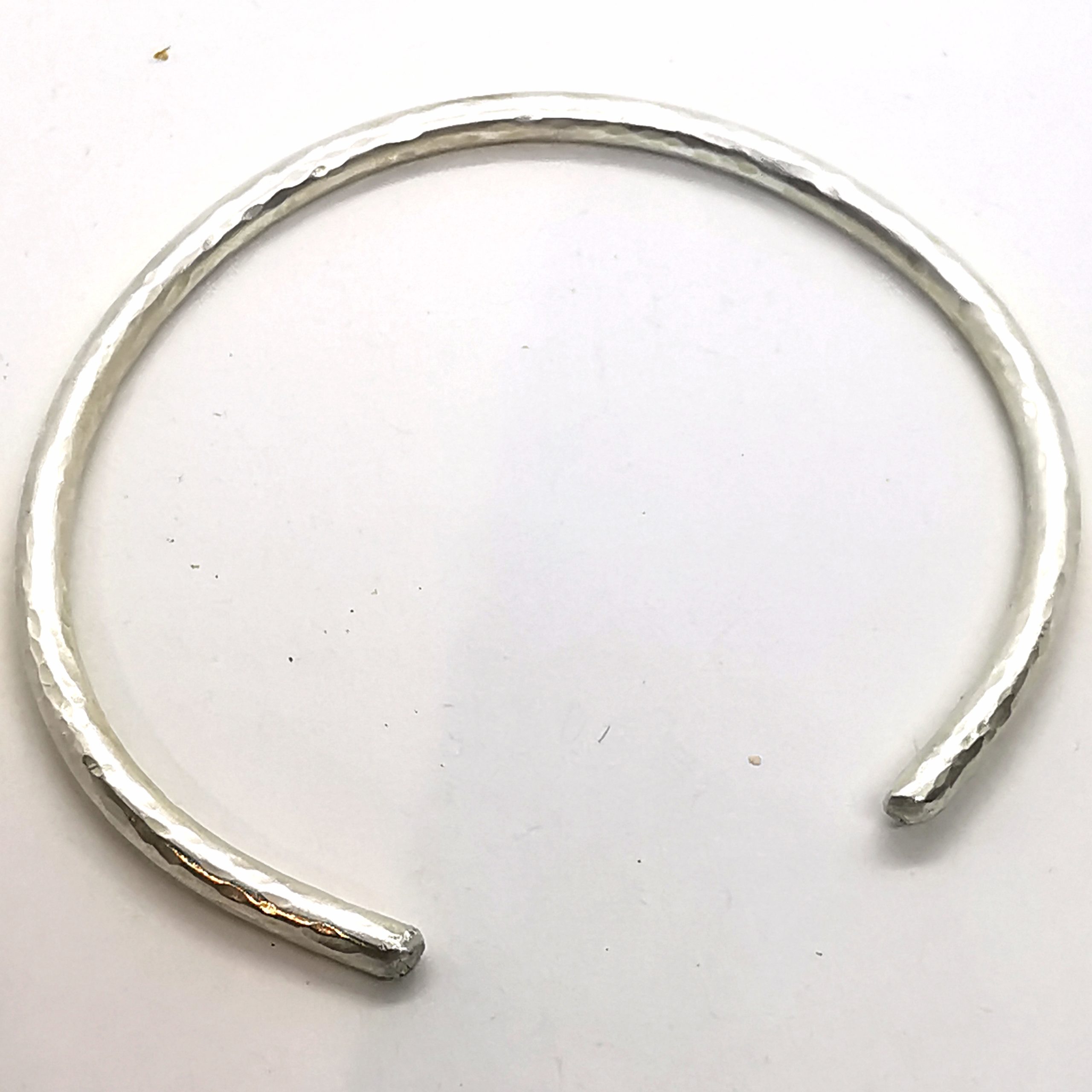 Bracelet jonc rond en argent martelé pour lui ou elle « Aléa »