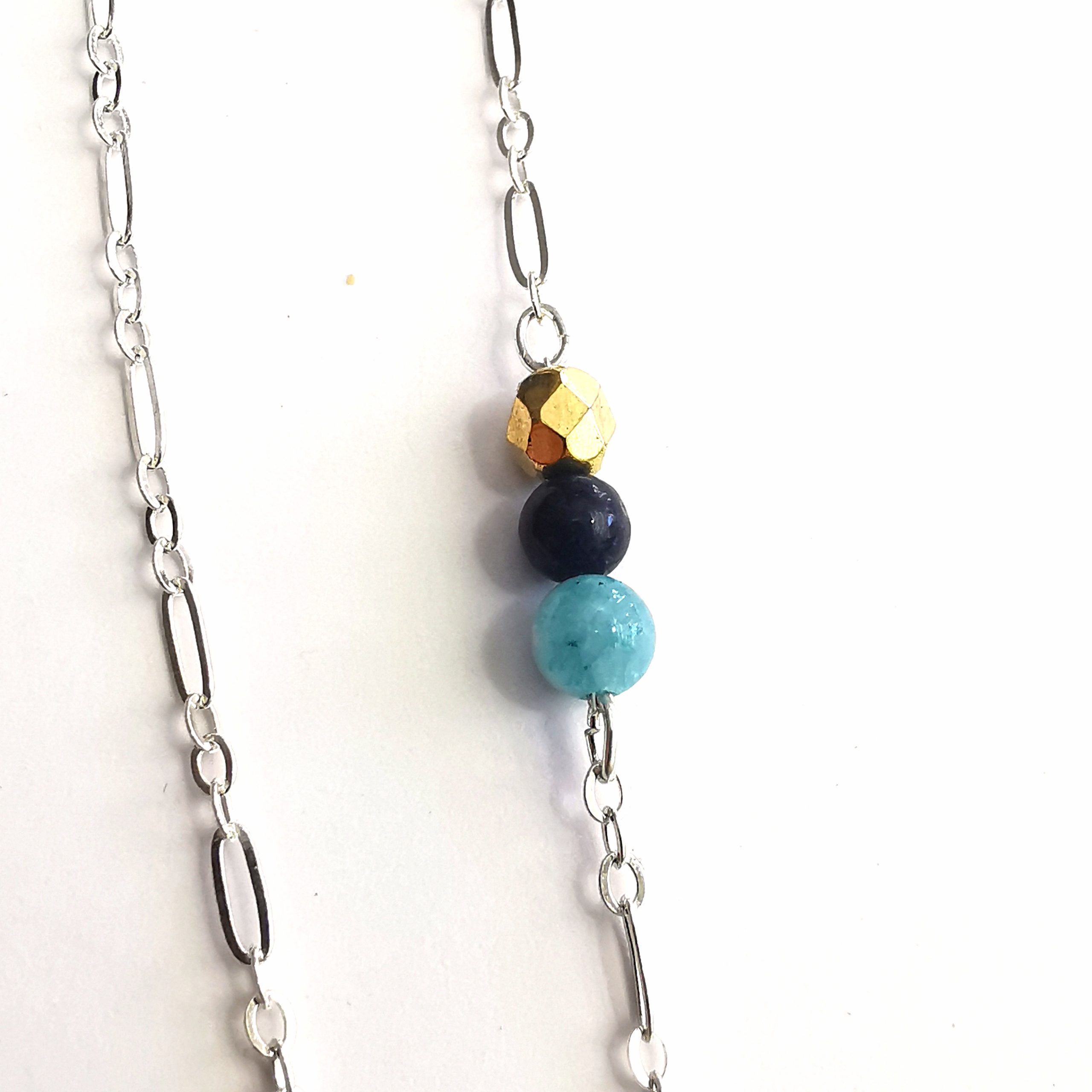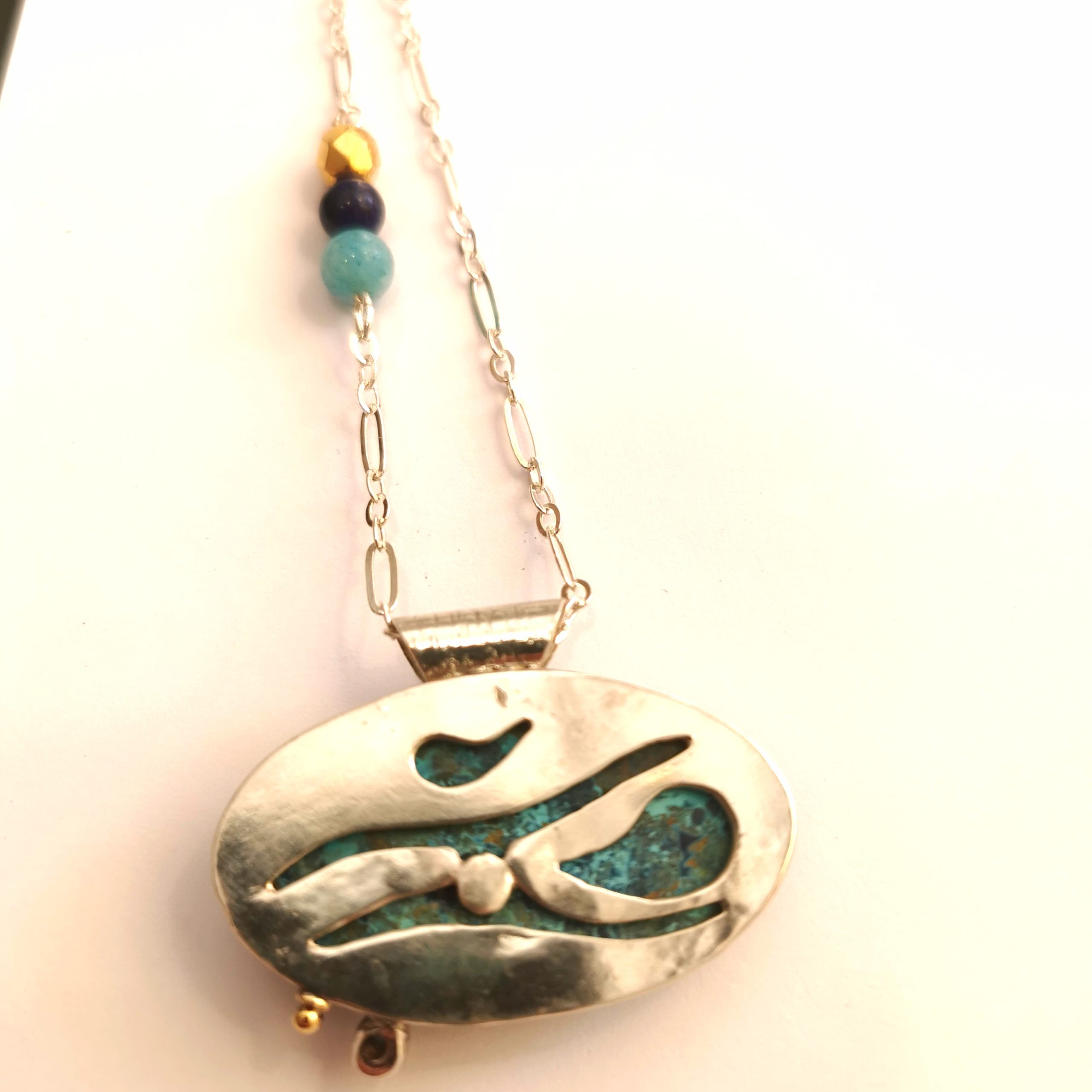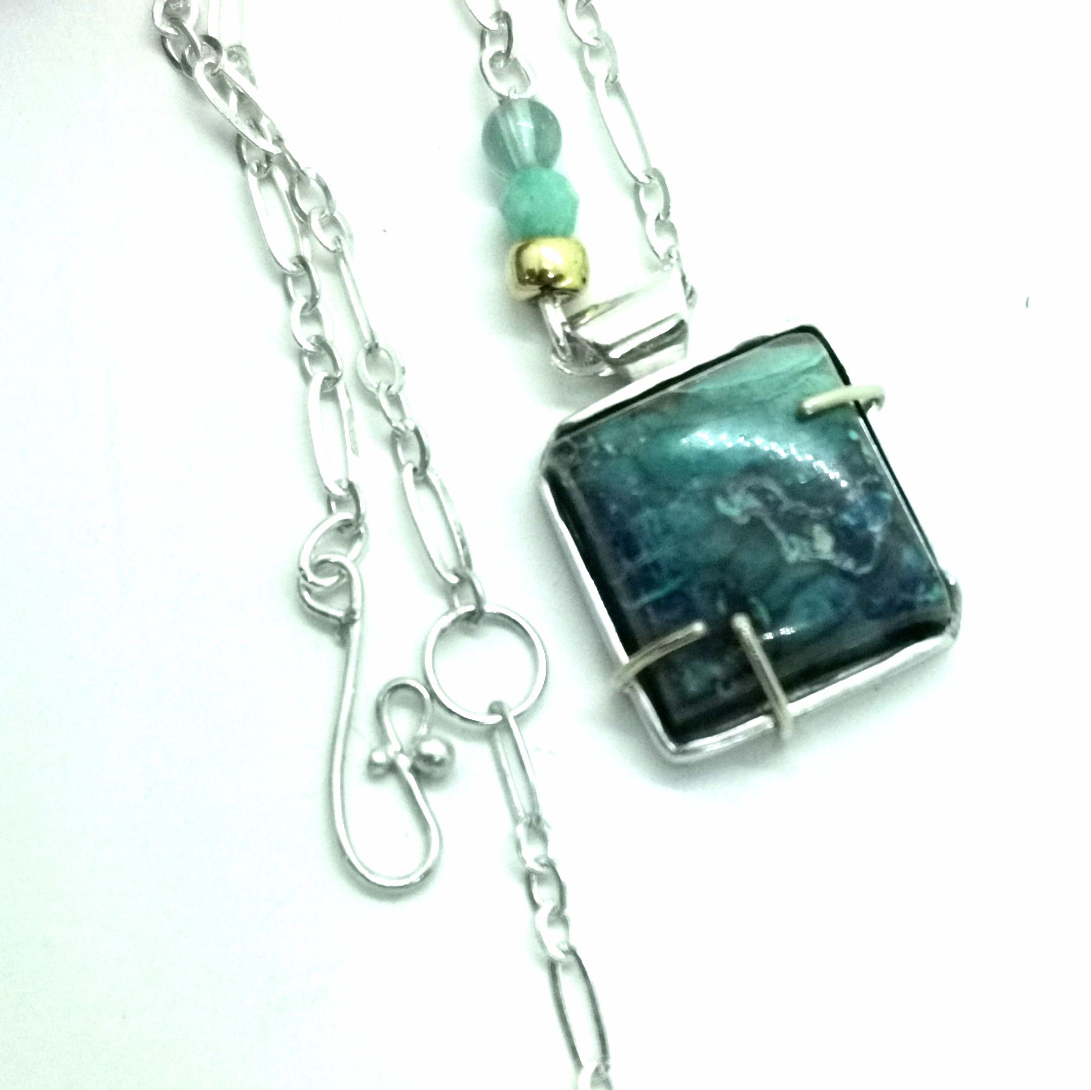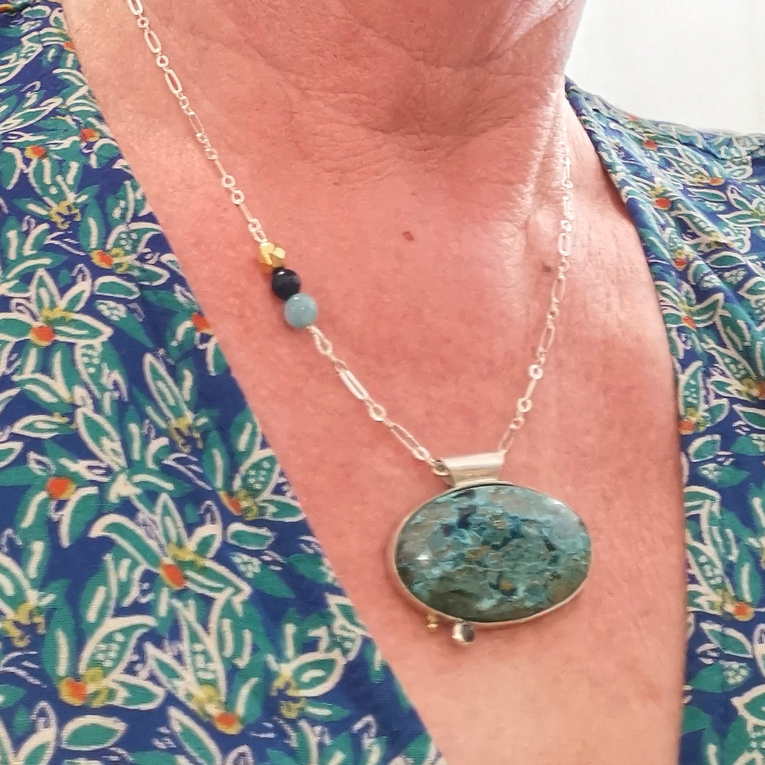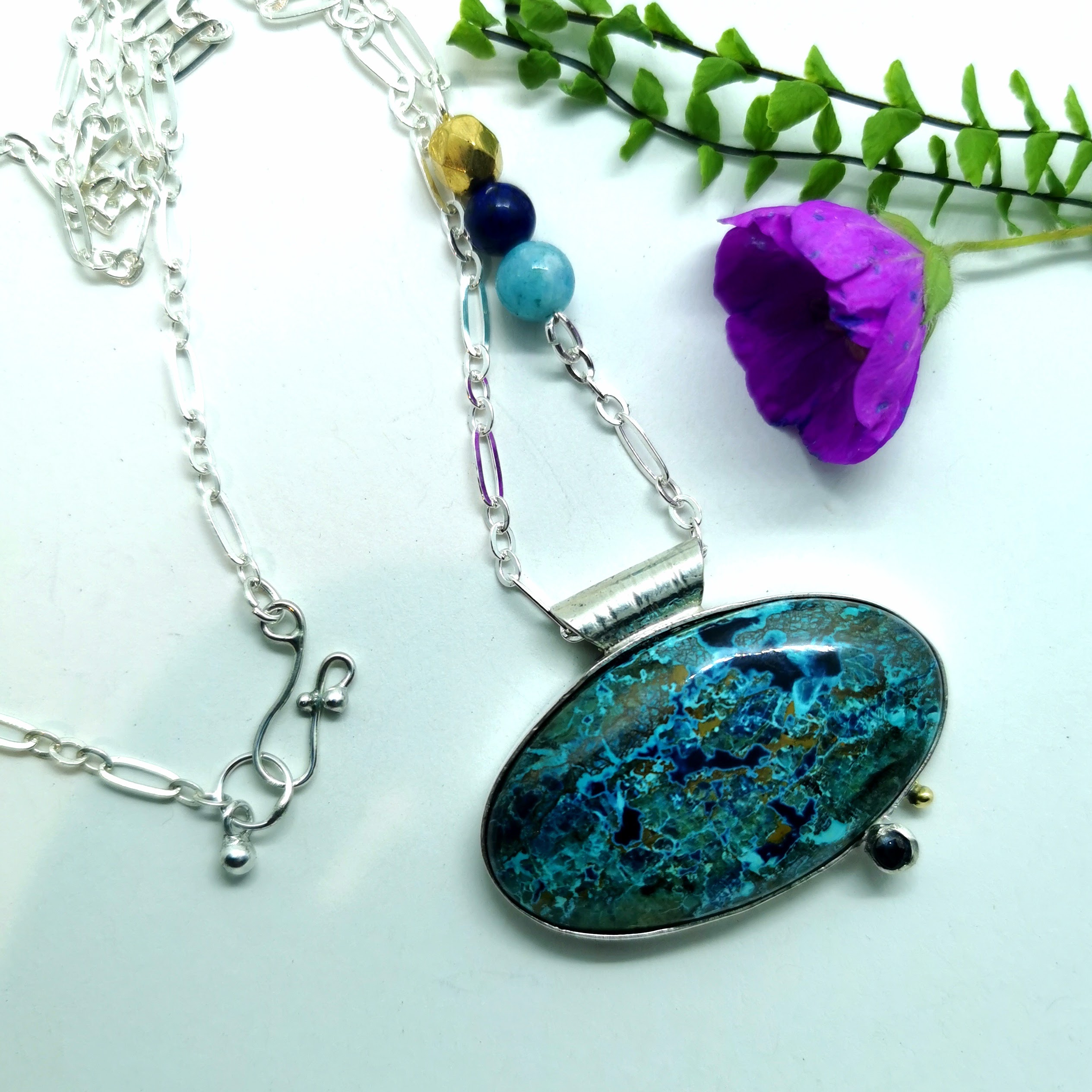 Pendentif en argent « Lumières du Gange » – Chrysocolle, saphir et or
