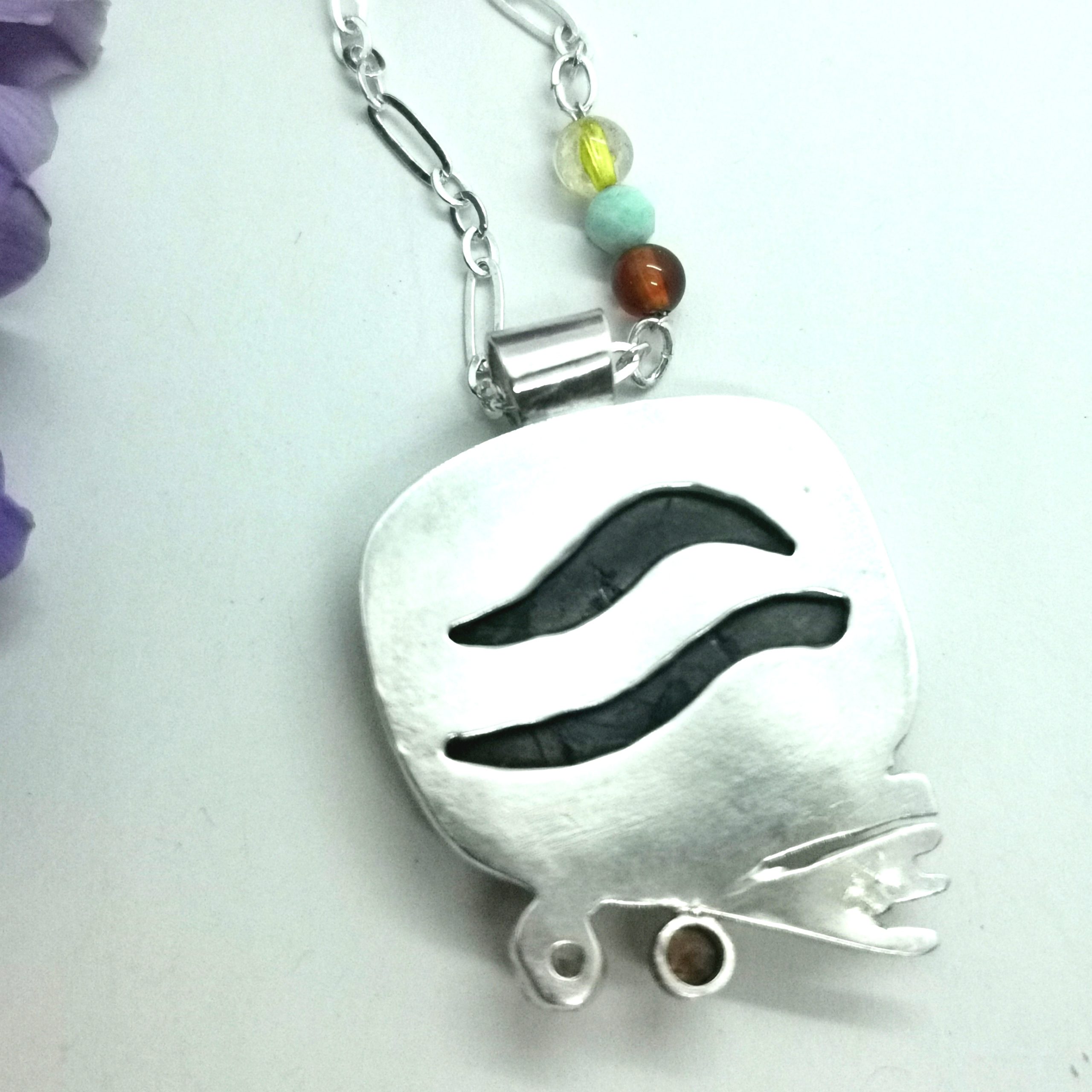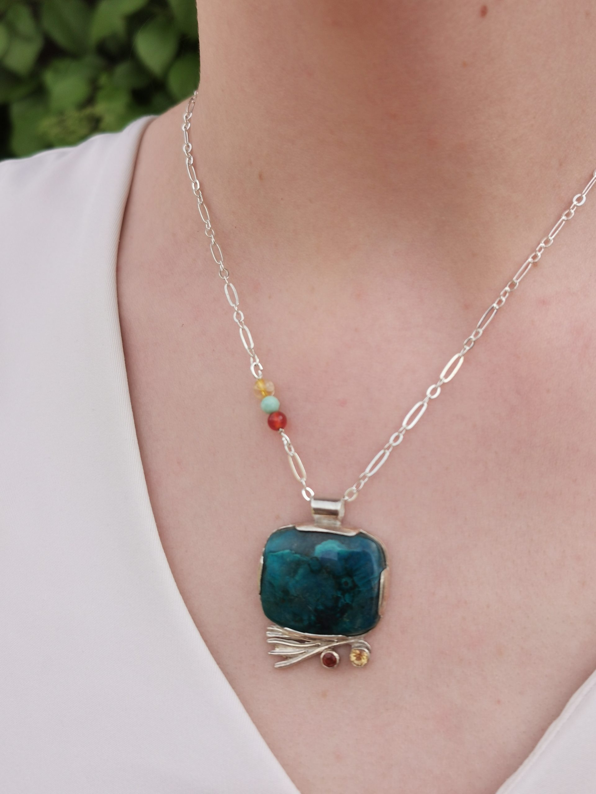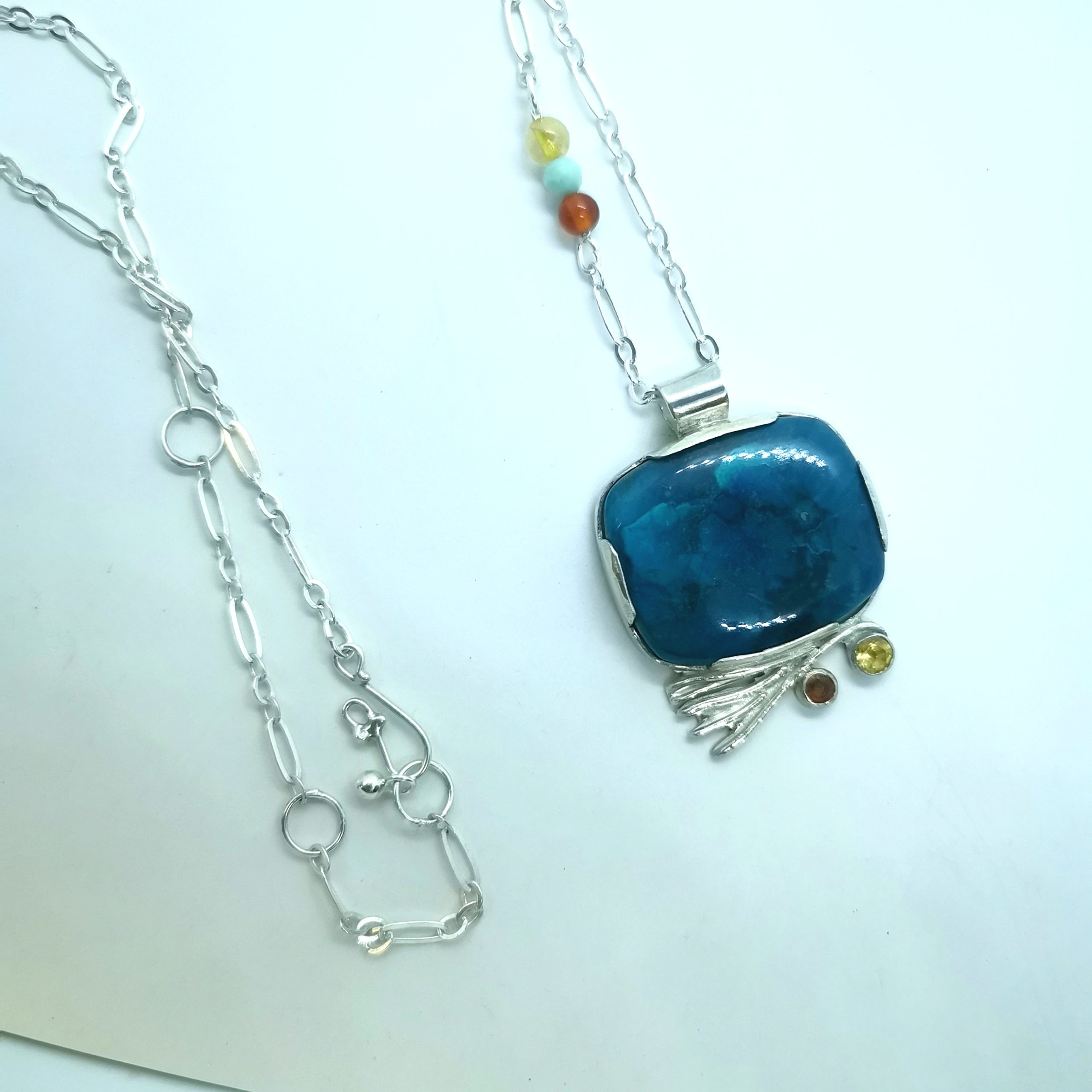 Pendentif en argent « Lumières du Gange » – Azurite, Citrine & Grenat sur argent