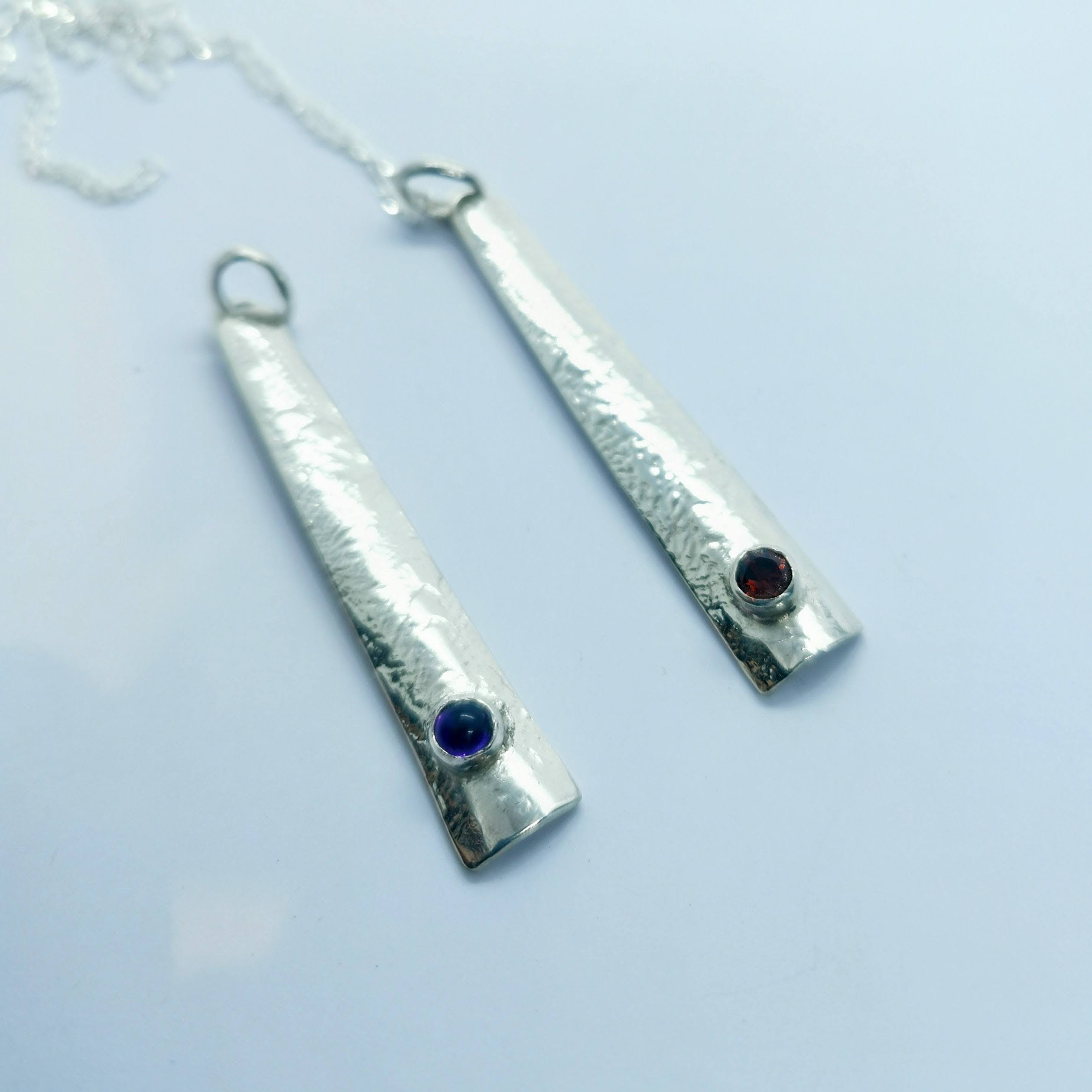 Pendentif en argent massif et pierre précieuse de 4 mm environ.