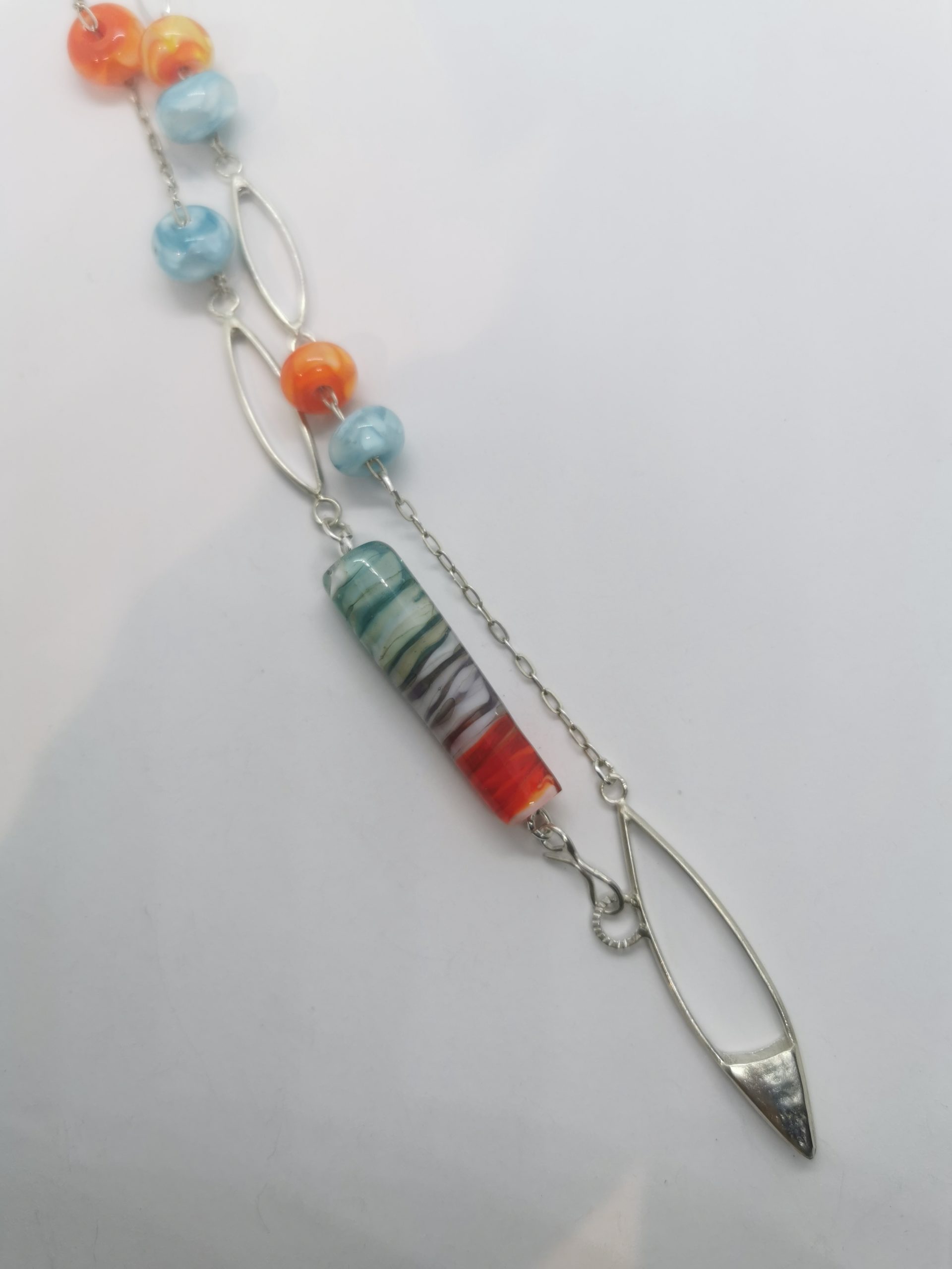 Sautoir argent et perles de verre de Murano au chalumeau, conçu et entièrement fabriqué dans mon atelier.
